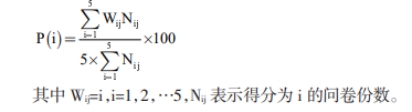 (4)整理、统计调查问卷,计算毕业要求分指标点达成值。问卷调查表统一采用5分制,其中5分表示非常认同,4分表示基本认同,3分表示一般认同,2分表示基本不认同,1分表示非常不认同。根据问卷调查表的统计情况计算每一项毕业要求的达成情况。调查表分为5个等级,得分分别为5、4、3、2、1 分。第i项毕业要求的分解点达成度P(i)计算如下: