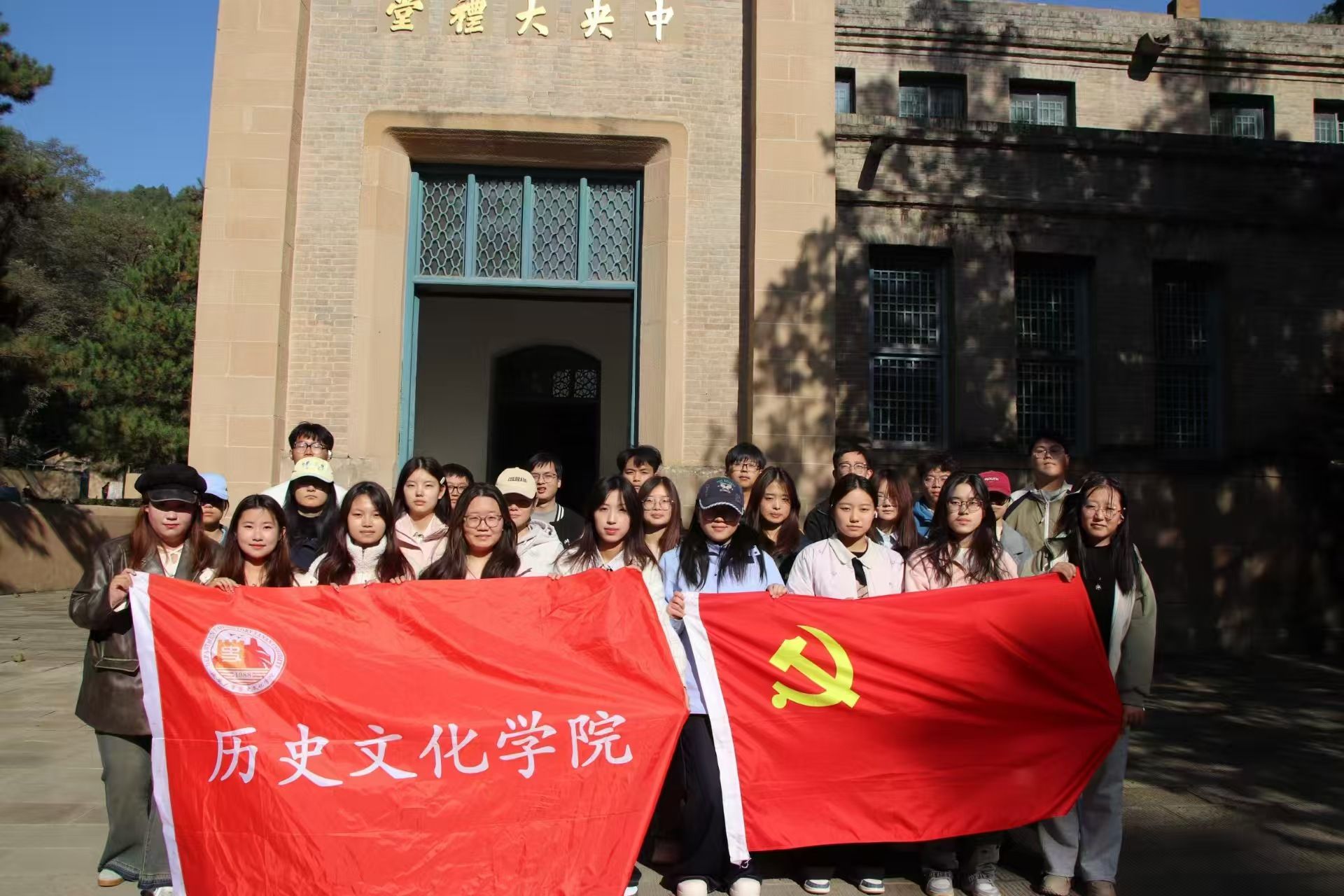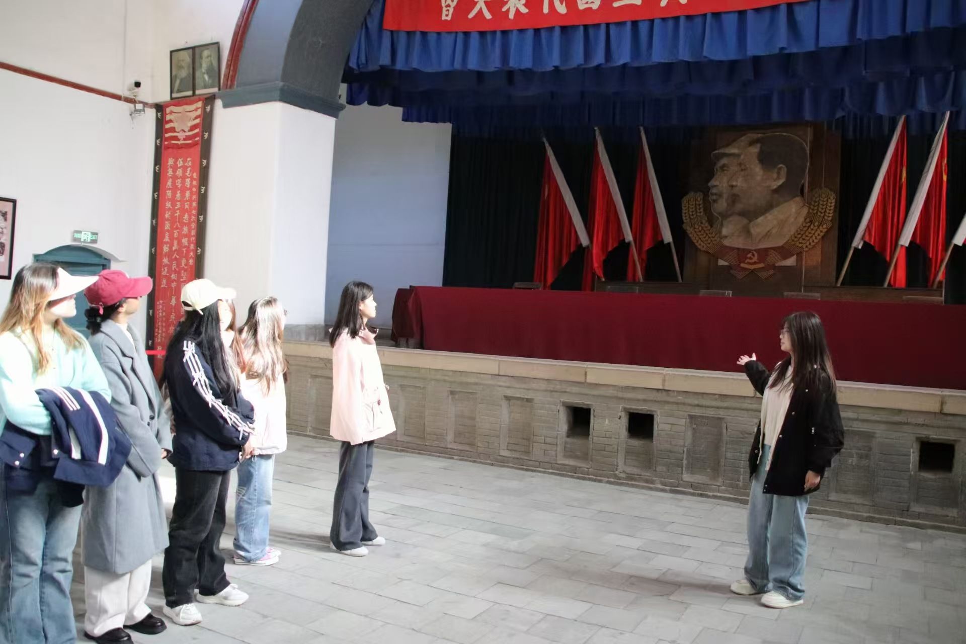 在中共七大会址——杨家岭中央大礼堂前,鲜艳的党旗迎风飘扬,庄严肃穆的建筑见证着一段光辉历程。学子们驻足凝视会场内的陈设,认真聆听关于大会历史的讲解。同学们纷纷表示,置身这一堪称"党的建设史上的里程碑"之地,对"思想上政治上组织上的统一团结"的重要性有了更深刻的理解。