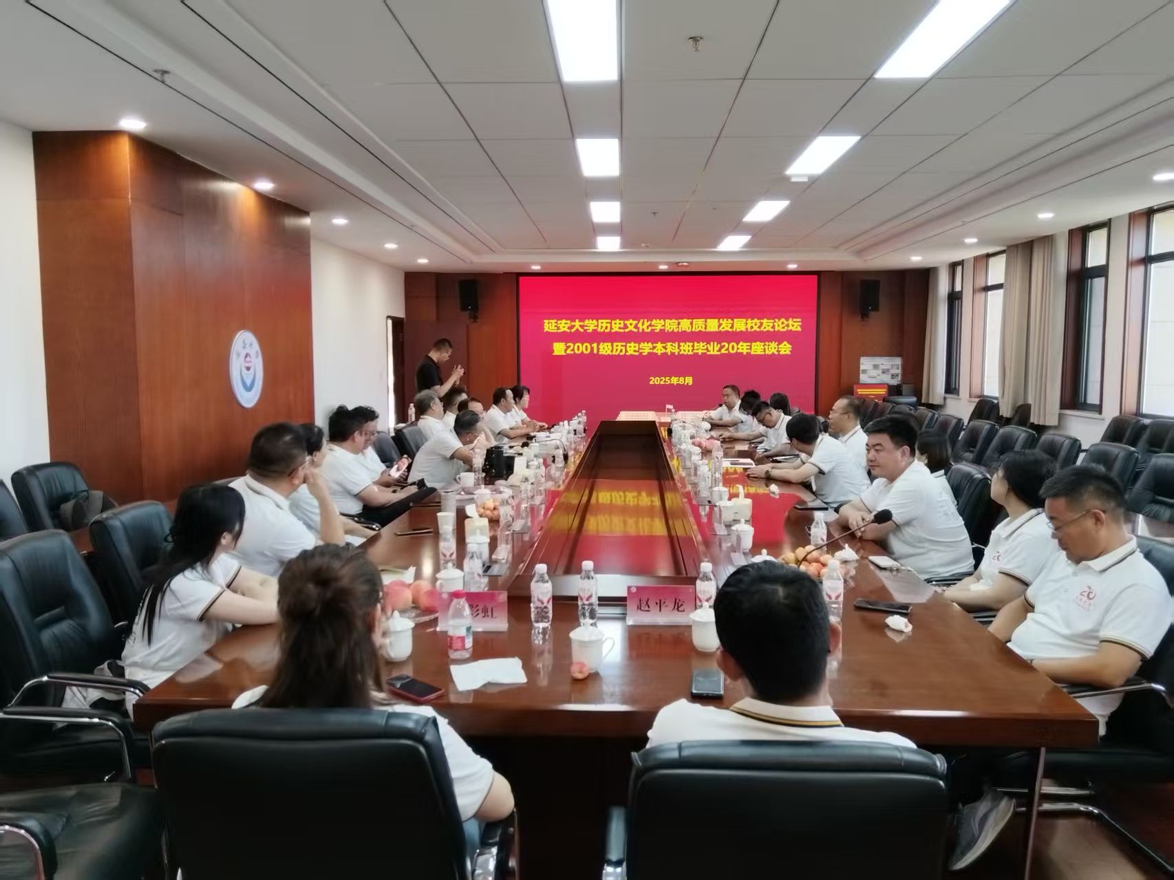8月9日下午,betway西汉姆联官方网站高质量发展员工论坛暨01级员工返校回“家”座谈会在行政楼7楼会议室举行。参加会议的员工有中国延安干部公司培训部原部长马广荣教授,延安金裕环保科技集团有限公司董事长吴金卫、延安市委组织部副部长、市委编办主任王军及01级历史学专业员工代表18人,参加会议的公司教师有人文社科公司原经理任学岭教授、betway西汉姆联官方网站原经理张小兵教授、betway西汉姆联官方网站原党委书记侯虎虎教授,马克思主义公司党委书记张彬以及betway西汉姆联官方网站教师代表,座谈会由党校办主任贺启翔主持。