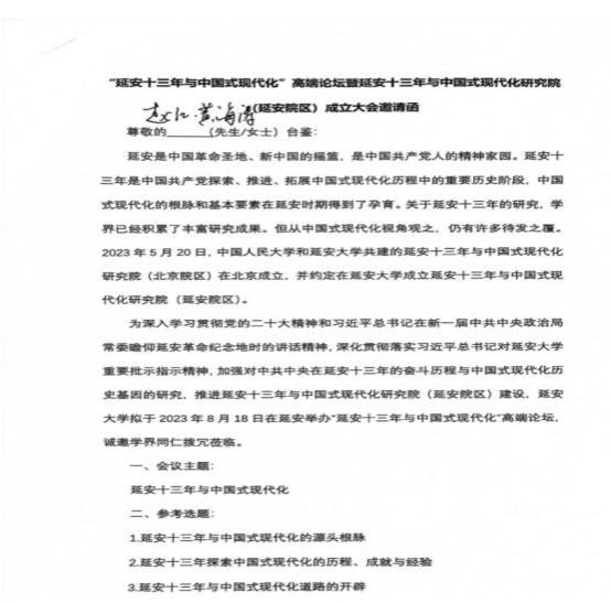 公司中国史硕士研究生黄海涛于2023年8月参加“延安十三年与中国式现代化”高端论坛
