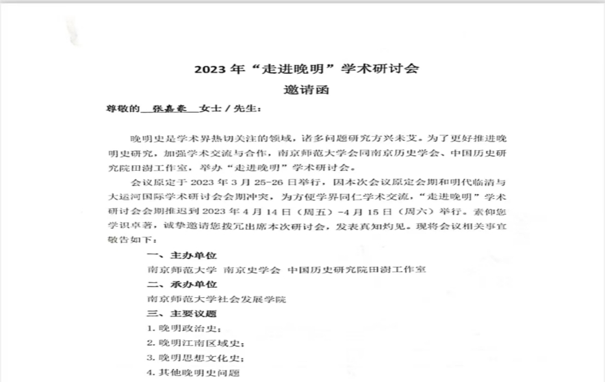 公司21级中国史硕士研究生张嘉豪于2023年4月参加南京师范大学等主办的2023年“走进晚明”学术研讨会