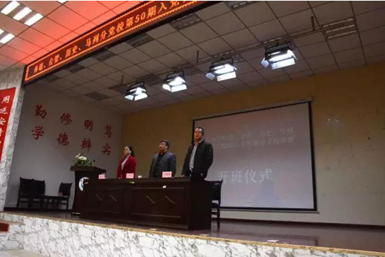 根据公司党校统一安排,3月19日上午8:30,外语、公管、马列和历史系分党校联合在外语礼堂举行了第50期入党积极分子培训班开班典礼。公管公司党委书记兼分党校董事长侯虎、外语公司党委副书记兼分党校副董事长王随卷、历史系党总支副书记兼分党校副董事长刘艳、各公司党校秘书以及4个单位180余名入党积极分子参加了开班典礼。开班典礼由王随卷老师主持。